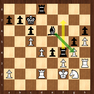 Brett 4: In bereits verlorener Stellung für Christian hätte der Nürnberger hier mit 34…Lxg4! den Sack zumachen können, denn nach 35.Sxf4 e3+! 36.Kxe3 gxf4+ 37.Kxf4 Lxh3 wäre er mit einer Mehrfigur verblieben.