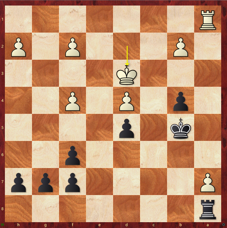 Nachdem Rudi 62. Kg8 gespielt hatte konnte Schwarz mit Sf4 sofort sicher stellen, dass der Bauer nicht zur Dame werden kann.