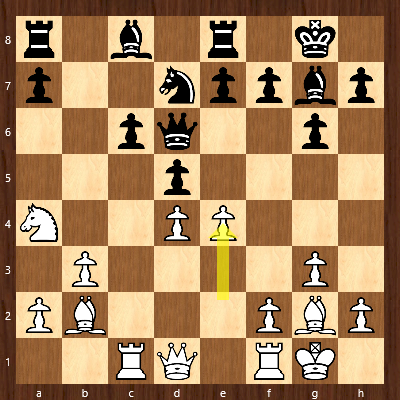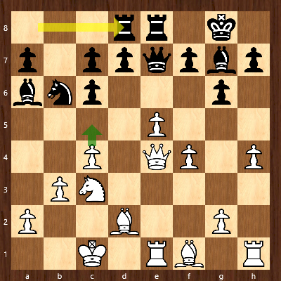 Brett 4: Aufgrund des Drucks gegen den rückständigen c-Bauern sah Christian richtigerweise die Zeit für gekommen das Zentrum zu öffnen und den Einfluss seiner Läufer zu erhöhen.