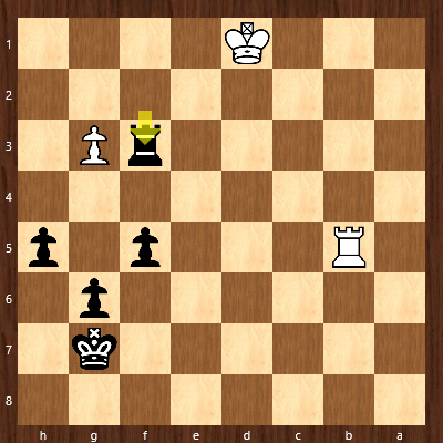 Brett 1: Nach seinem letzten Zug 47…Tf3 war auch der letzte weiße Bauer verloren.