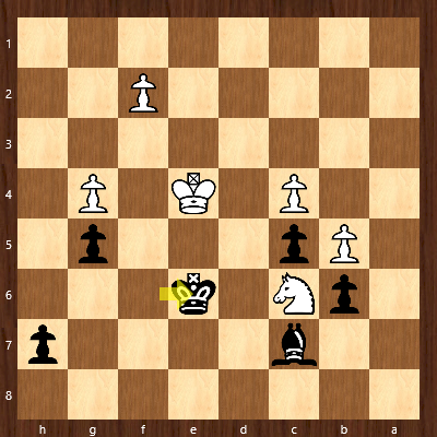 Nachdem Rudi 62. Kg8 gespielt hatte konnte Schwarz mit Sf4 sofort sicher stellen, dass der Bauer nicht zur Dame werden kann.