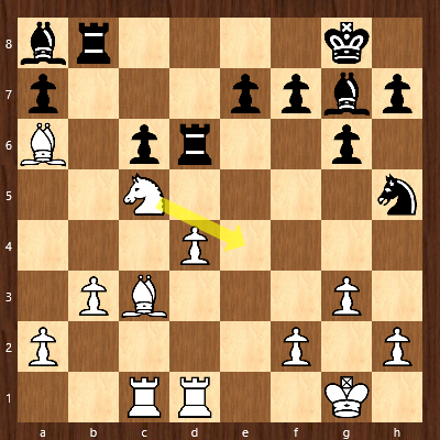 Brett 4: Das Eindringen des Turms auf d6 erwies sich als Boomerang. Christian spielte konsequent, gab auch seinen zweiten Läufer und konnte anschließend den Bauern c5 gewinnen.