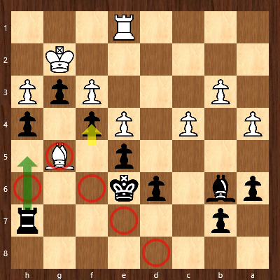 Weiß: Kf7, La6, g6 Schwarz: Ke3, Sh5